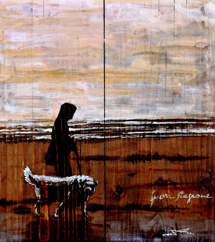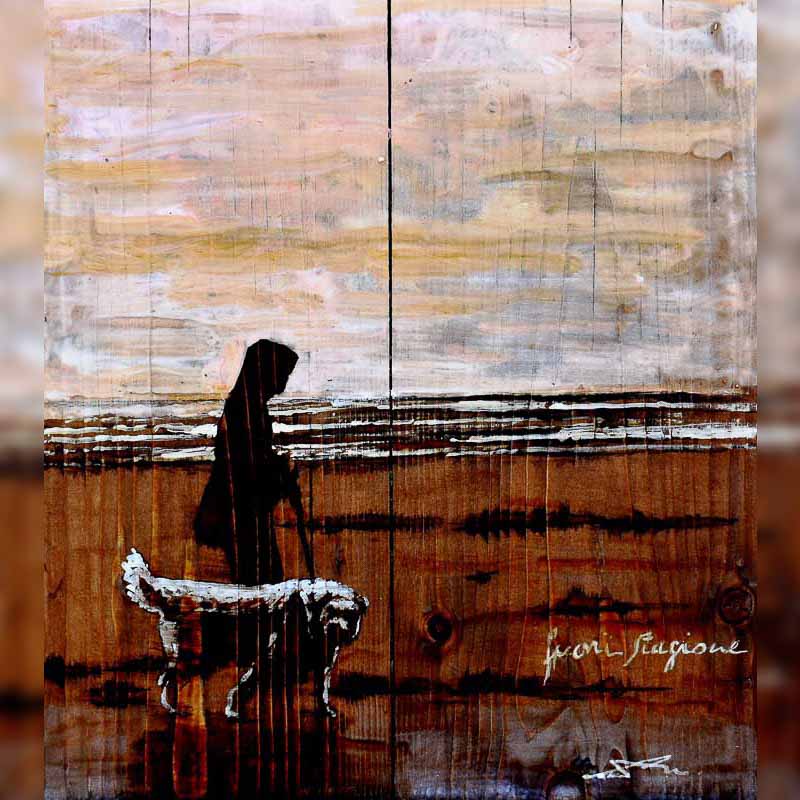 Fuori stagione, dimensioni cm. 49 x 54, tempera su tavola, orientamento verticale, anno 2021.