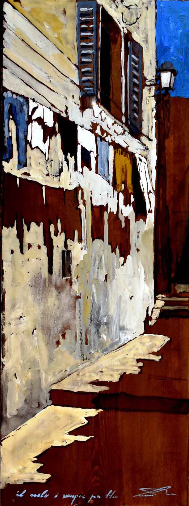 Il cielo è sempre più blu, dimensioni cm. 68 x 37, tempera su tavola, , orientamento verticale, anno 2020.