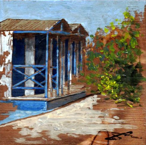Le cabine, tempera su tavola cm. 17 x 17, anno 2020.