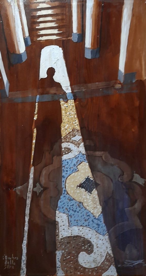 L’ombra della sera, tempera su tavola, dimensioni 56 x 36 cm, orientamento verticale, anno 2020.