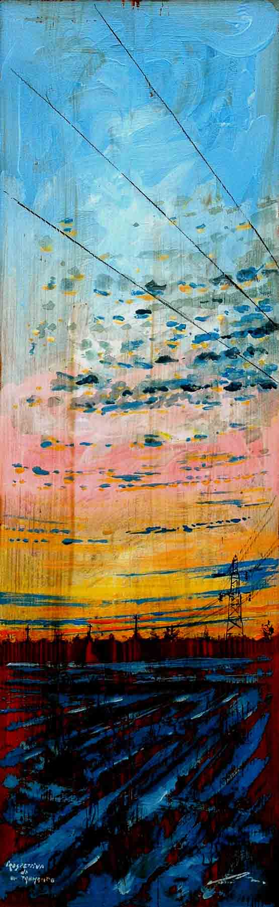 Prospettive di un tramonto, tempera su tavola, cm. 96 x 36, anno 2014.