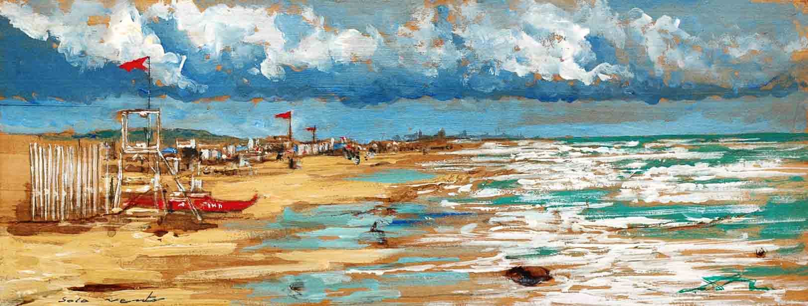 Solo vento, dimensioni cm. 36 x 62, tempera su tavola, orientamento orizzontale, anno 2017.